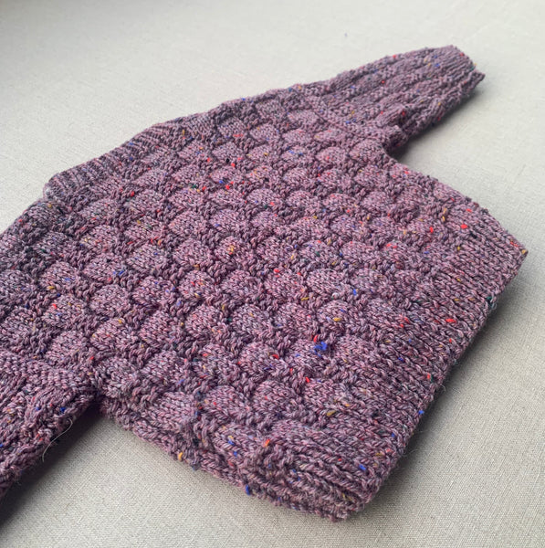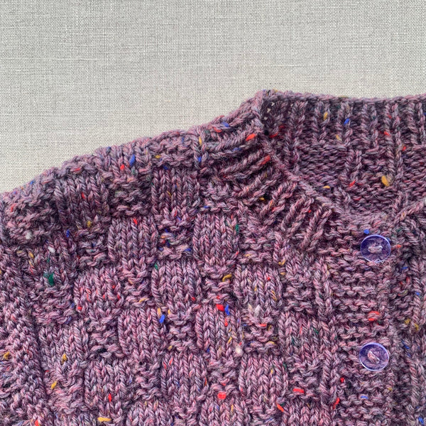 Knitted by Nana Luke Cardigan - Rustic Tweed Rosette