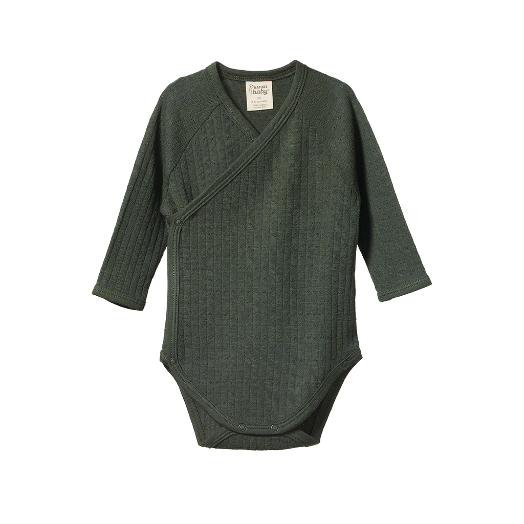 Nature Baby Mer Ess L/S Kimono Bodysuit Pointelle - Thyme