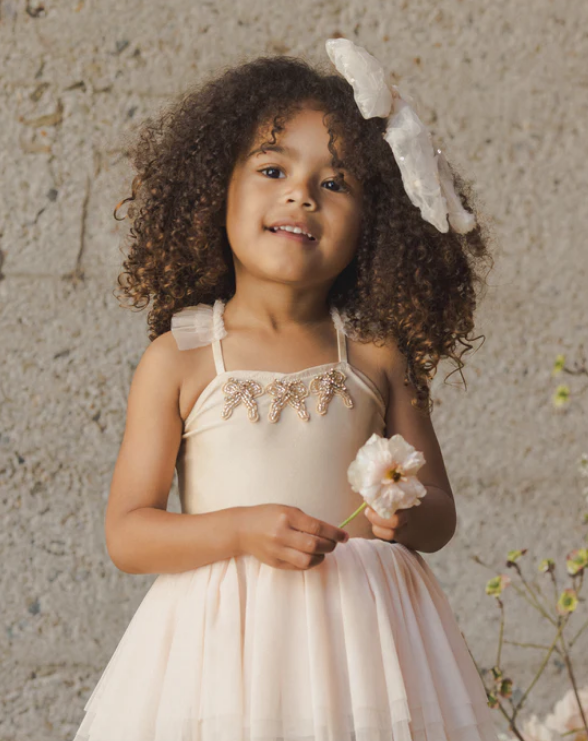 Shine in our Clementine Tutu, with a bow-appliqué leotard, full tiered tulle skirt, and adjustable ruffle straps—made for twirls, dress-up, and the most magical moments.