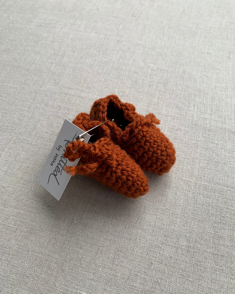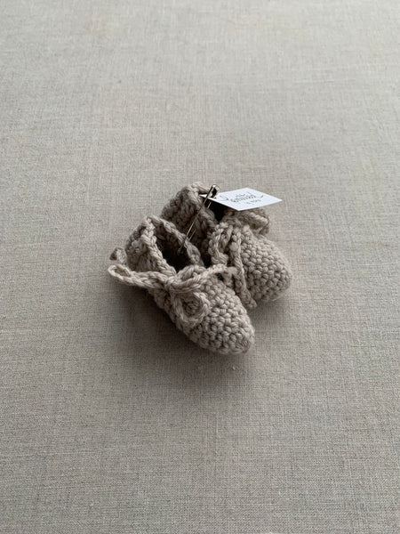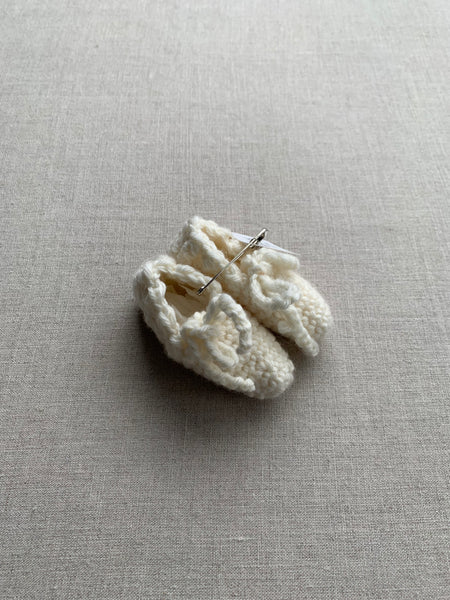 Nana has been at it again. Not only does she continue to hand knit her adorable beanies, she has added the sweetest little booties to the range.