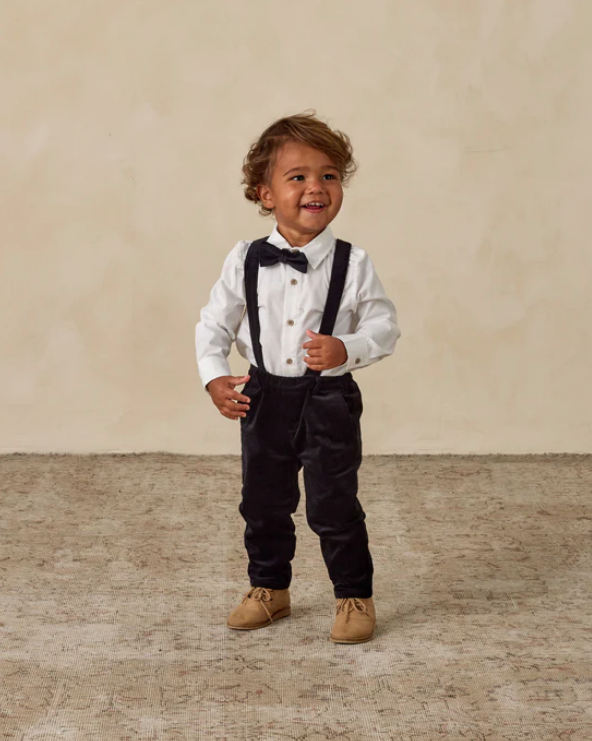 Our velvet Suspender Pants feature adjustable straps, an elasticized back waist for comfort, and functional pockets. Pair with our Harrison Button Down and a tie for a polished look.