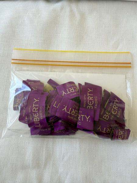 These are genuine liberty labels sourced from London wholesale supply for Pretty Wild Kids local Australian production. No longer needed and offered here among other trims in the Big Dreams craft & create area.