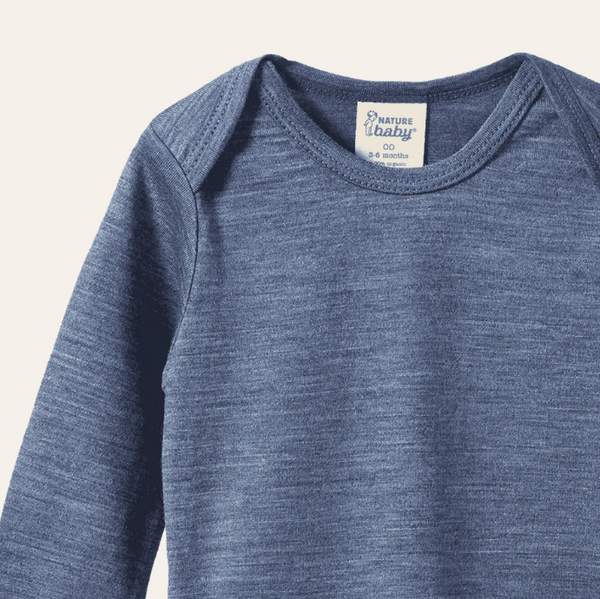 An essential for the layette. The first thing most babies wear is a bodysuit. Accessible buttons on the crotch mean the outfit won't ride up and expose baby's tummy or back and also makes for easy nappy changes. Soft merino wool will keep baby cosy and warm, bodysuit is finished with cotton rib binding. Our organic merino is certified, ensuring the gold standard certification in environmental and social responsibility.