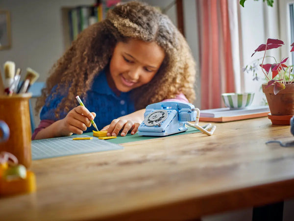 Nostalgic adults and creative kids aged 8 and up can go back in time with this stylish LEGO® Creator 3in1 Retro Telephone (31174) building set. It features a cool retro phone toy from the 1960s with a liftable receiver, a flexible cord, a rotary dial and a spring function for when callers hang up. The retro decor set also comes with a brick-built pencil and customizable sticky notepad with a choice of 3 tiles featuring different messages. This impressive LEGO set offers 3 different building options with the same set of bricks: a retro phone toy from the 1960s, a toy phone from the 1980s sitting on a charging base or 2 cool phones from the 2000s. LEGO Creator 3in1 sets make great gifts for kids and feature 3 different building options in every box. These 3in1 rebuildable toy sets let them enjoy imaginative play and offer an impressive range that appeals to their biggest passions. Models cannot be built simultaneously. Set contains 383 pieces.
