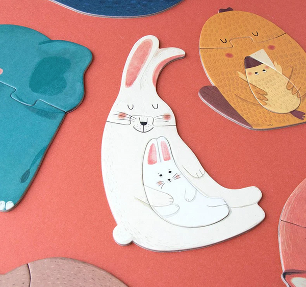The puzzle's objective is to match each baby animal with its mother, encouraging children to assemble the pieces and make these adorable connections. It's a fun and interactive way for young ones to learn while playing.